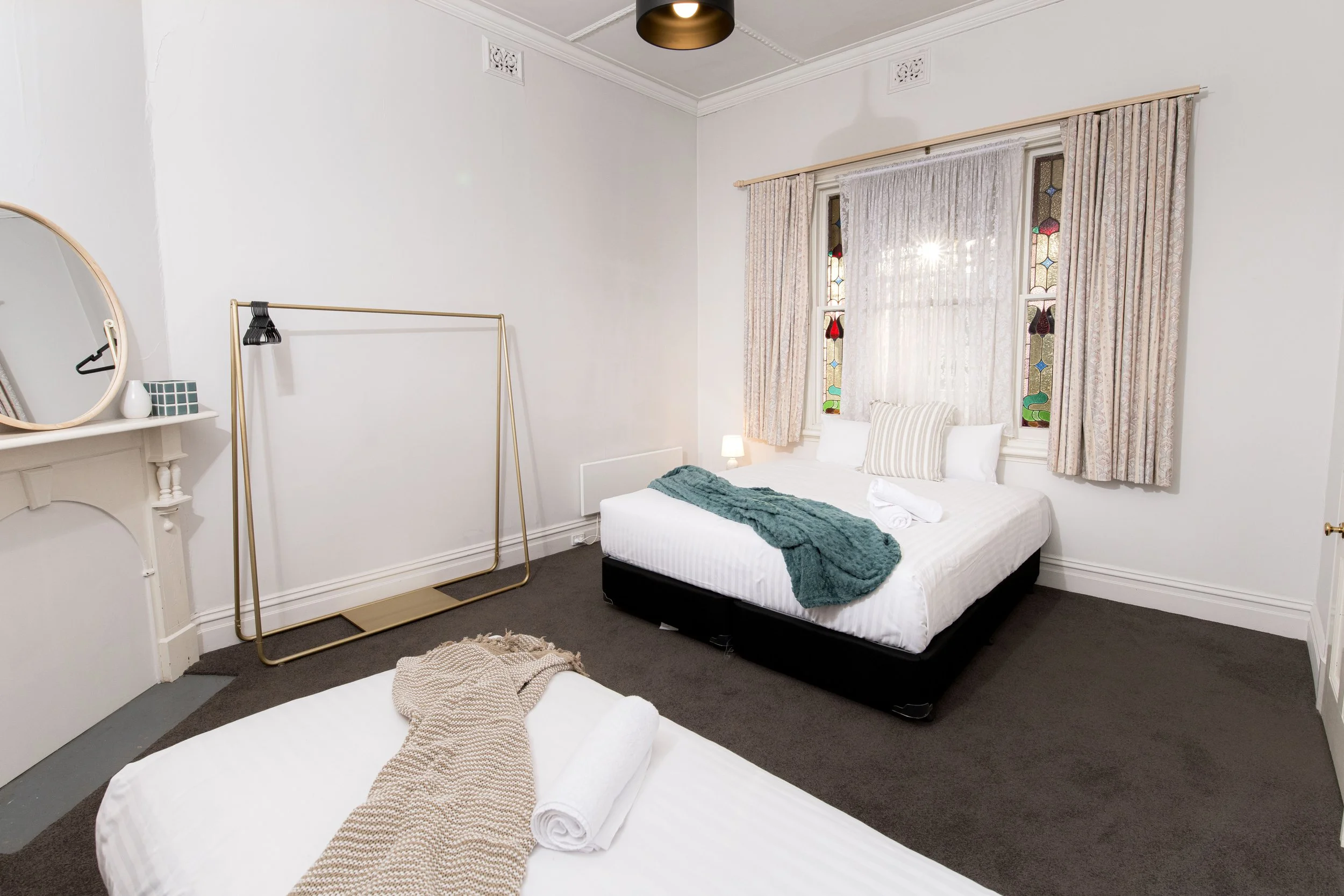 Step into elegance with this beautiful Victorian style home set in the Bendigo CBD. This property is 2 bedrooms, 1 bathroom, has a fully equipped kitchen, hosts a spacious living space and the perfect sun room to over look the iconic cathedral with your morning coffee. Each bedroom can sleep 3 guests with the beds being arranged as 1 King + 1 Single or 3 Singles. There is sleeping capacity for 2 additional guests on the queen pull out sofa bed in the living room.